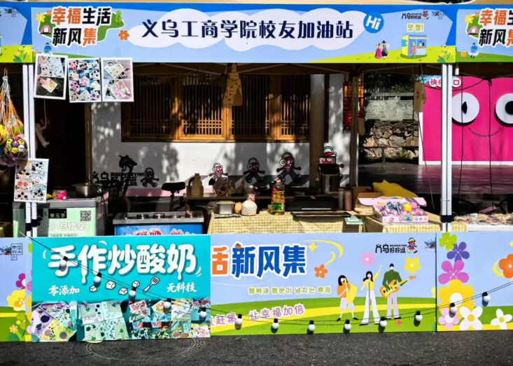 中秋国庆双节同庆期间,义乌工商职业技术学院“校史育人·知行合一”志愿服务小分队走进江东街道南苑社区,开展社会实践活动。同学们在服务点全面参与摊位运营,从商品陈列、推广销售到客户沟通均自主负责,亲历创业全流程,实现了电商运营、品牌策划等课程知识的实践转化。